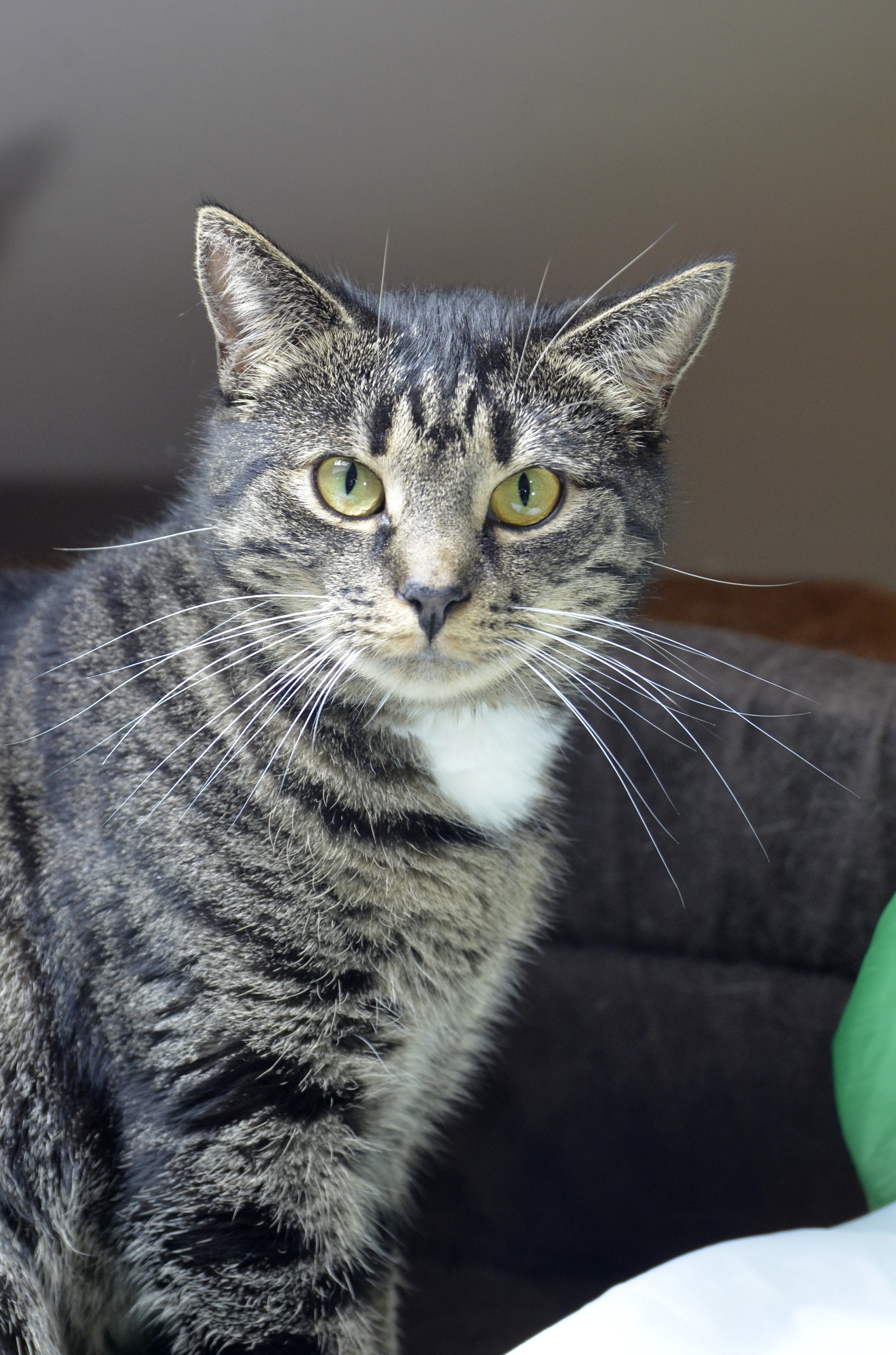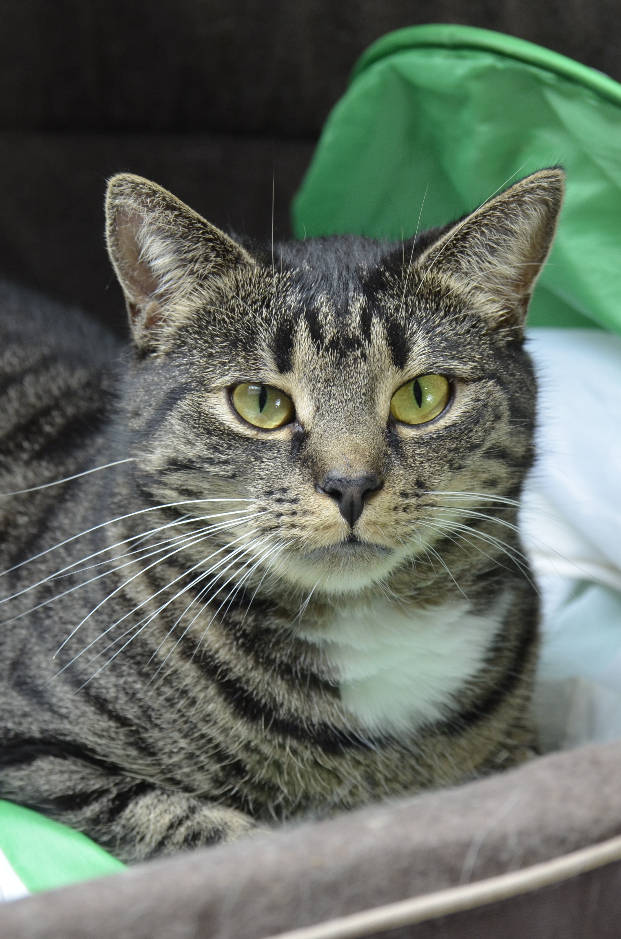 Nieśmiała, trochę wycofana kotka, która potrzebuje socjalizacji.