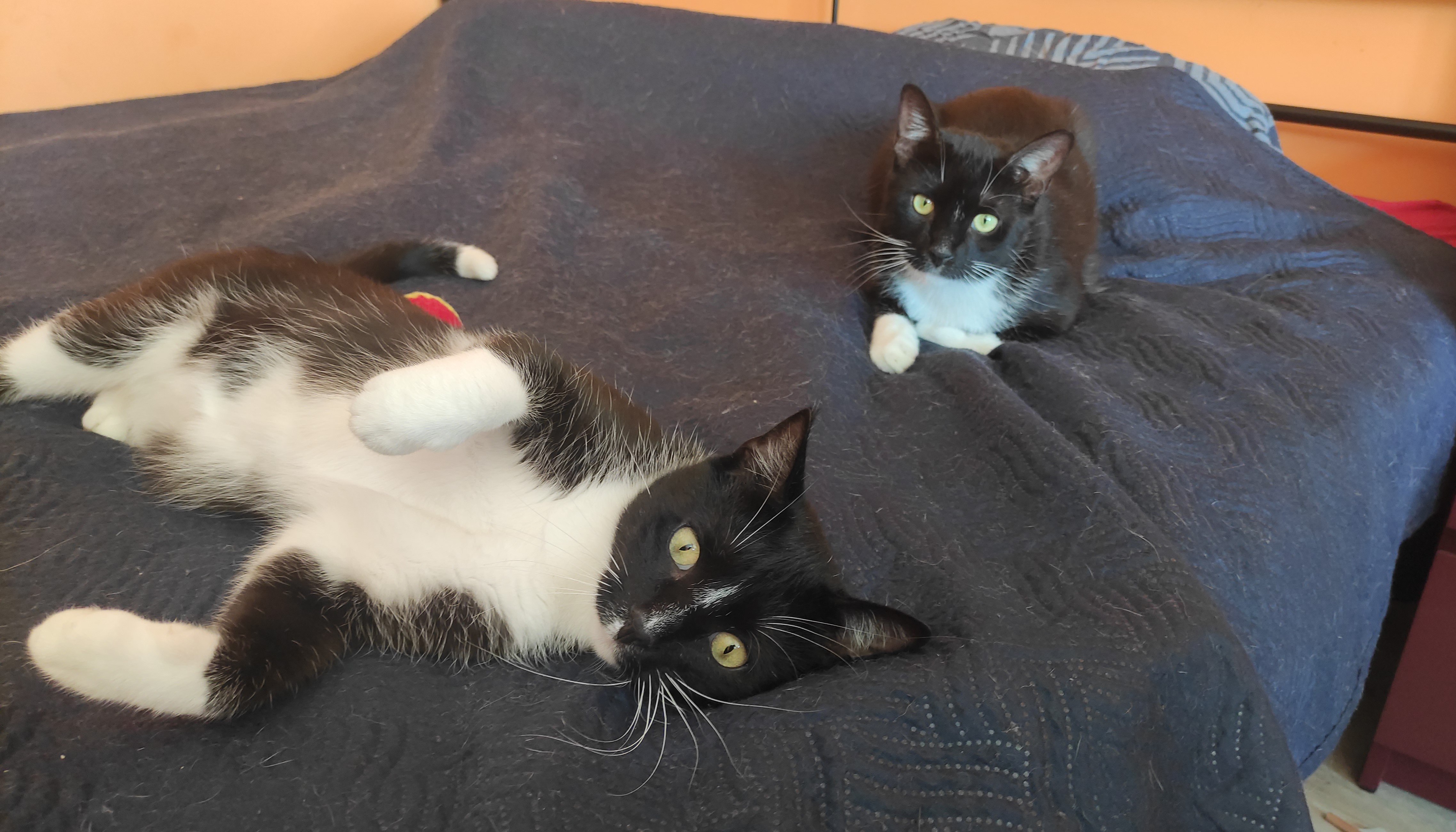 Chłopaki są nie do rozdzielenia, potrzebują siebie jak powietrza i dają sobie ogromne wsparcie. Mają około 1,5 roku, są wykastrowani testy FiV i FeLV ujemne. Przebojowe dzieciaki chcą zdobyć cały świat!
