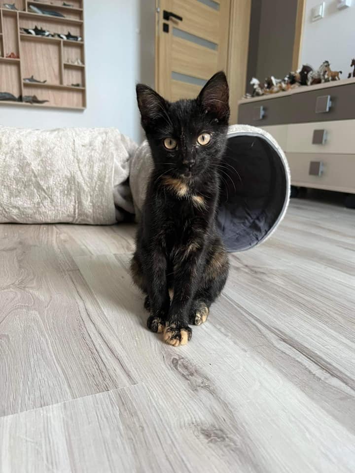 Kobra i Noc. Dwa piękne, młodziutkie koteczki do wspólnej adopcji. Dzieciaki mają 12 tygodni, są odrobaczone, odpchlone testy panleukopenia, giardia i koronawirus ujemne. Kobra- szylkretowa dama i Noc- czarny przystojniak. Kochani, maluszki pięknie się socjalizują w domku tymczasowym. Mamy nadzieję, że szybko skradną Wasze serca. Zachęcamy do adopcja w dwupaku.