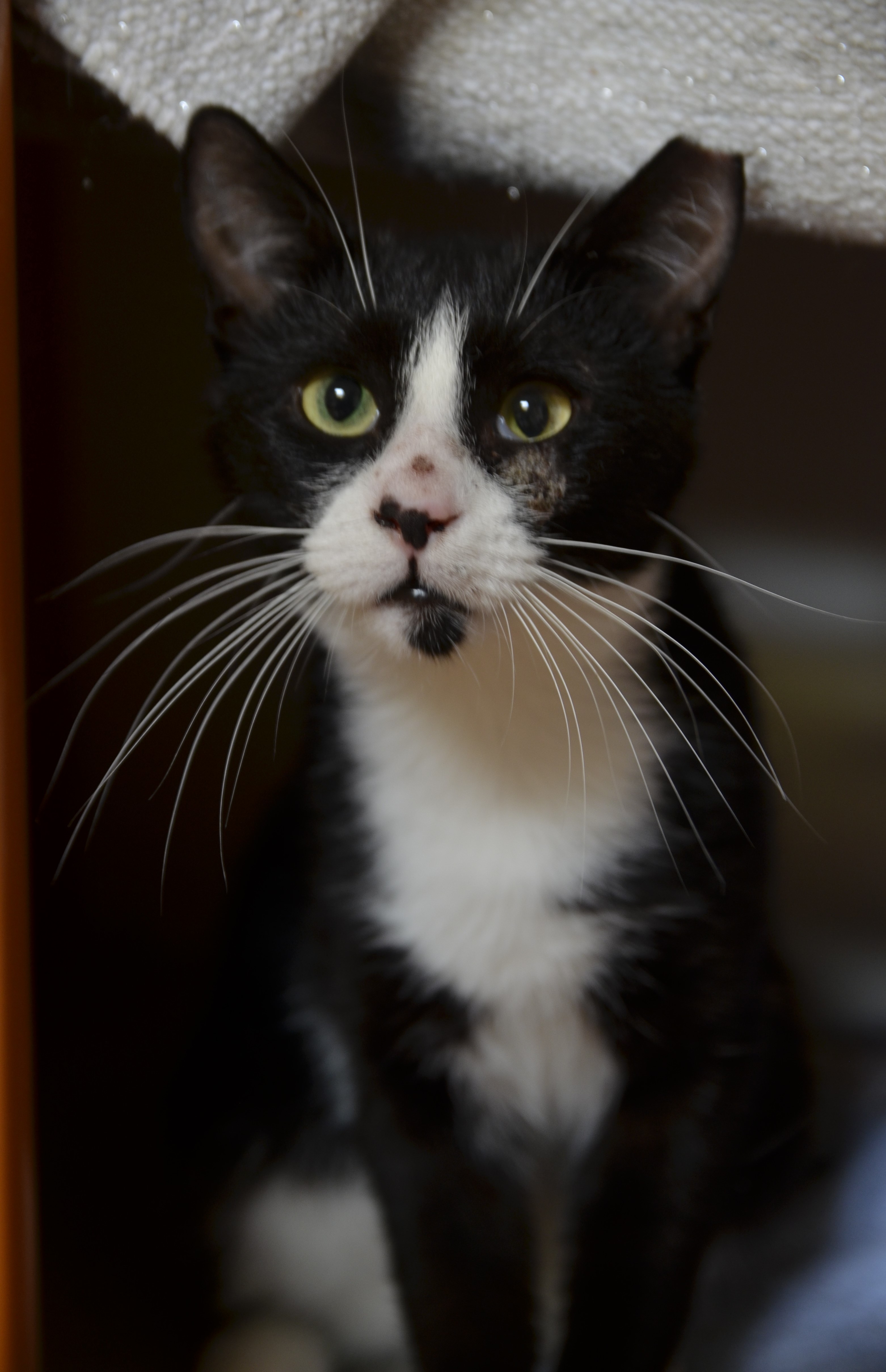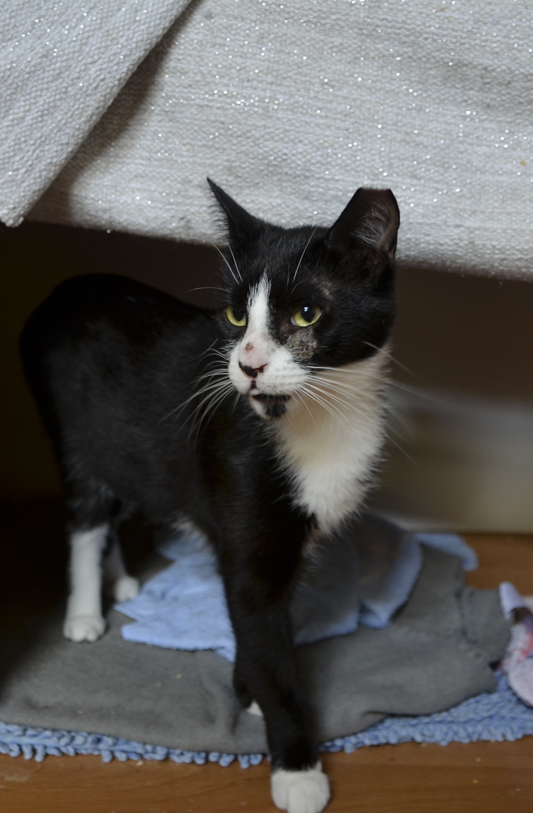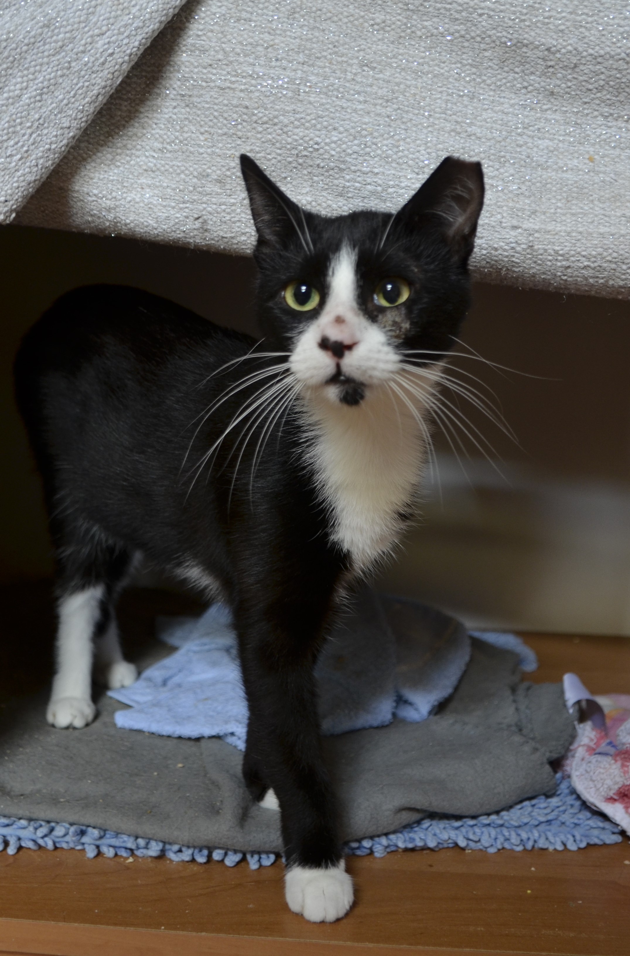 Wspaniała, młodziutka koteczka już po zabiegu kastracji. Kotka czeka na Was w naszej kociarni w Leźnie. Bajaderka nie boi się człowieka wręcz przeciwnie zabiega o jego uwagę i zaczepia do głaskania.
