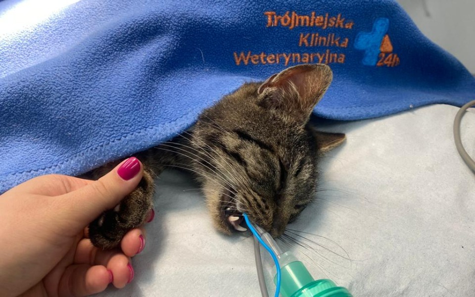 Kot po operacji ratującej życie