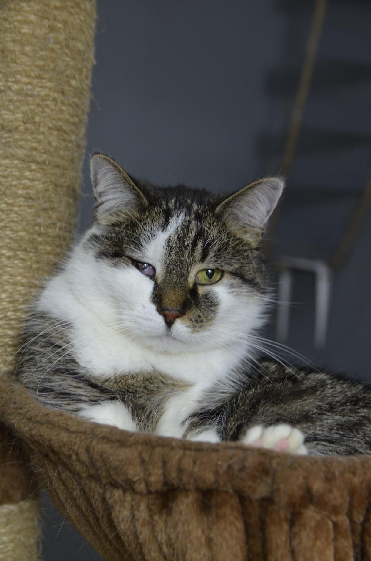 Kotka nie widzi na jedno oczko i nie ma ogonka. Klinicznie zdrowa, zaszczepiona i wysterylizowana.