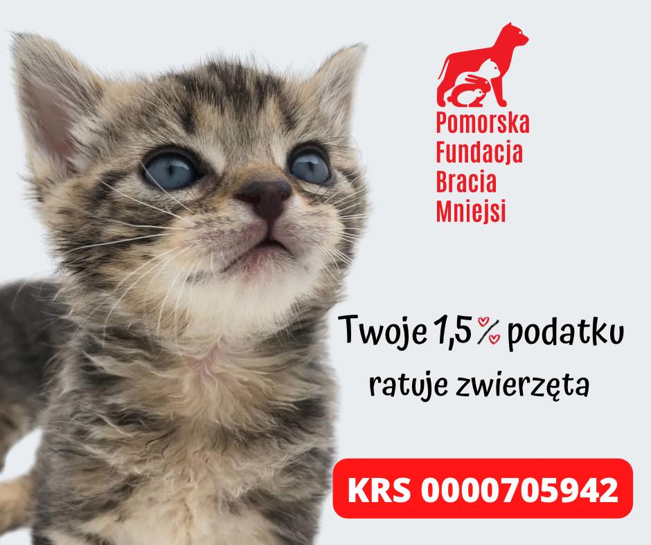 - Ofiaruj 1,5 % swojego podatku na ratowanie bezdomnych zwierząt KRS: 0000705942